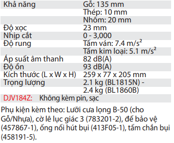Chiết khấu cho đơn hàng số lượng lớn.Model DJV184 là loại máy cưa lọng dùng pin hàng đầu sử dụng pin 18V LXTLi-Ion, và phát triển dựa trên model JV103D.