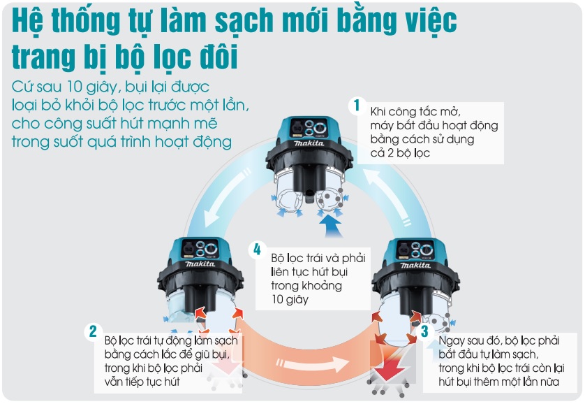 - Hệ thống tự làm sạch mới bằng việc trang bị bộ lọc đôi