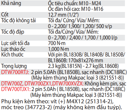 Makita Việt Nam là thương hiệu hàng đầu về dòng sản phẩm máy công nghiệp với sản phẩm Máy Siết Bu Lông Dùng Pin DTW700 12.7mm (1/2”) 18V, với phương châm hoạt động cung cấp các dịch vụ hậu mãi một cách nhanh chóng, nhờ vào đó mà hiện đang đứng vị trí số 1 ở Việt Nam. Sản phẩm chính hãng hiện được giới thiệu chính thức trên trang web www.makitasonle.com. Quý Doanh nghiệp, Quý khách hàng có nhu cầu mua hàng chính hãng, hãy đến với Công ty TNHH Thương mại Sơn Lệ - Đại lý phân phối chính thức & Trung tâm Bảo hành Ủy nhiệm của MAKITA & MAKTEC tại Việt Nam.