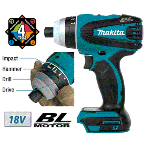 Máy Vặn Vít 4 Chức Năng Dùng Pin DTP141Z là một sản phẩm dùng pin đáng kinh ngạc đến từ thương hiệu Makita. Máy sử dụng công nghệ BL motor không chổi than và cơ chế ly hợp giúp động cơ chạy mát hơn và hiệu quả hơn, tuổi thọ cao hơn. Máy có 4 chế độ vận hành bao gồm: