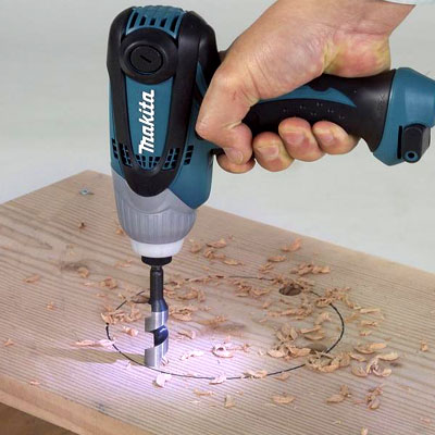 - Máy vặn vít Makita TD0100 có cản máy bằng lân quang thuận tiện làm việc trong khu vực thiếu sáng.